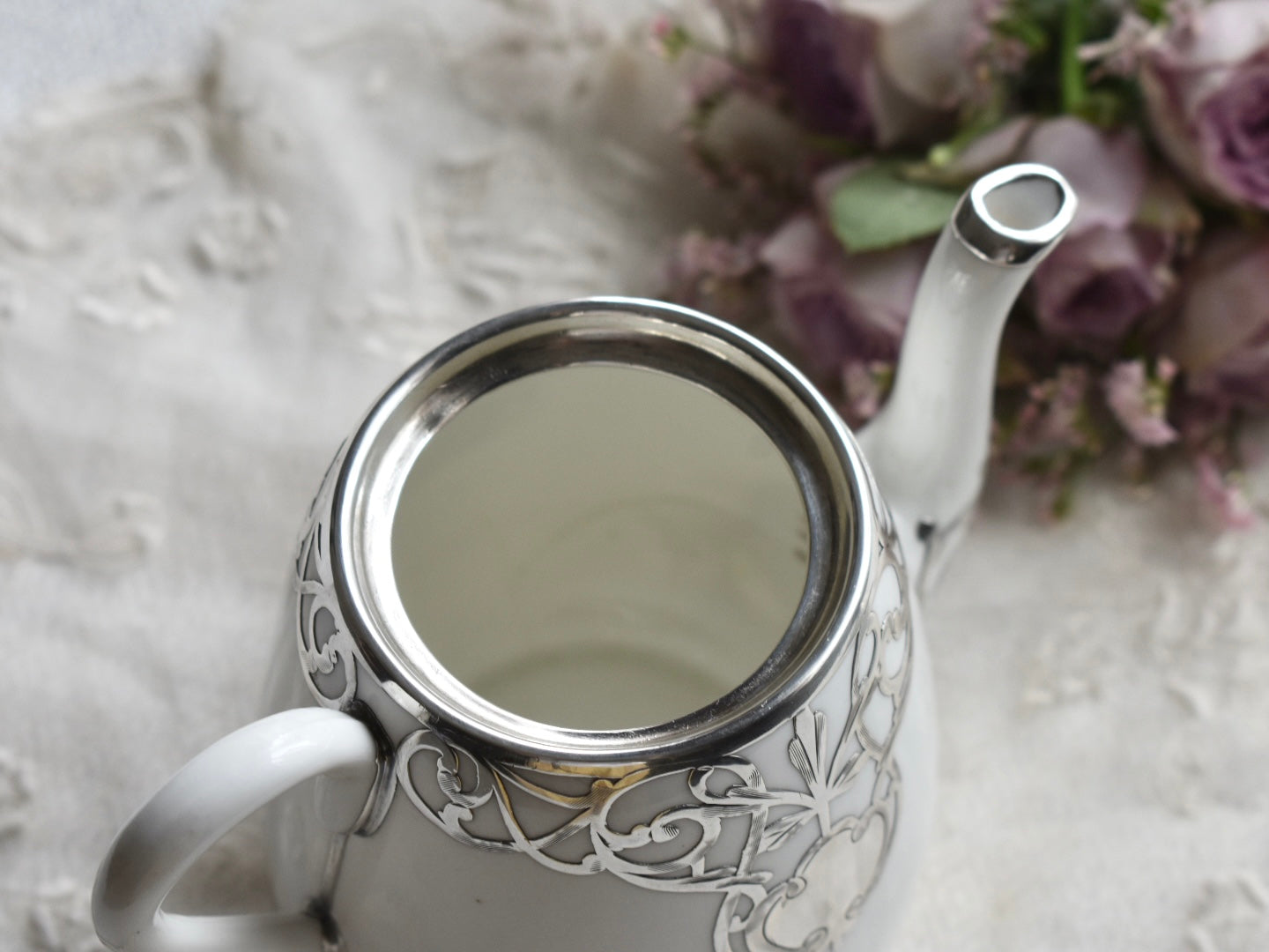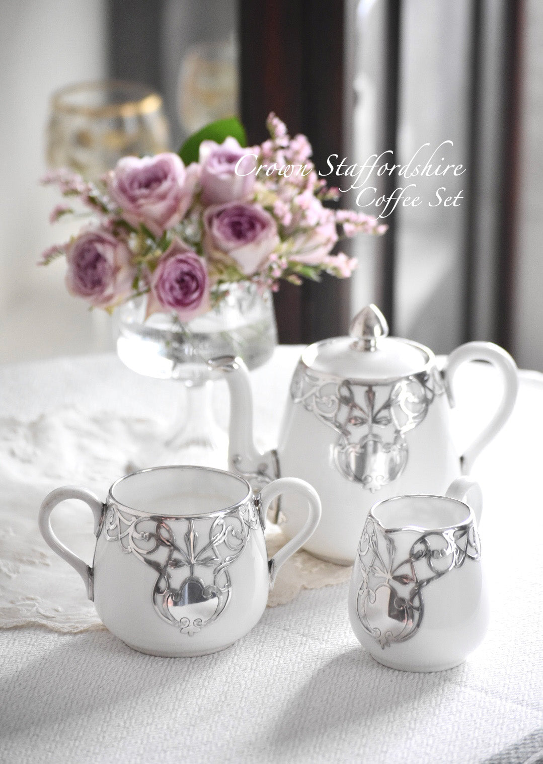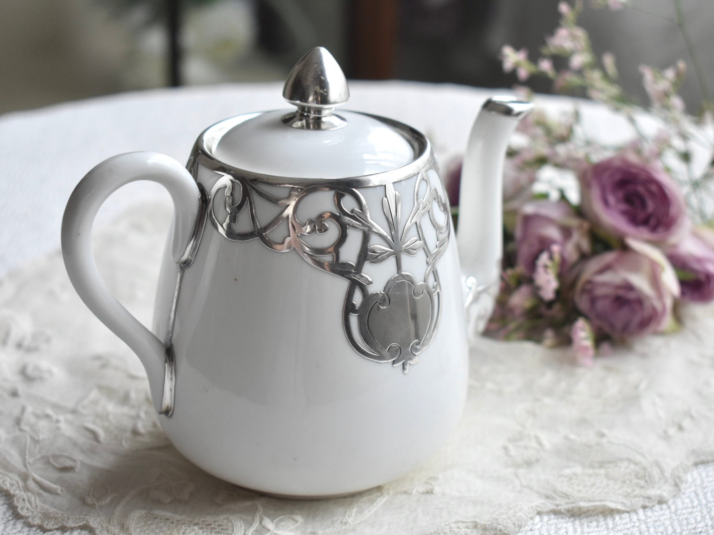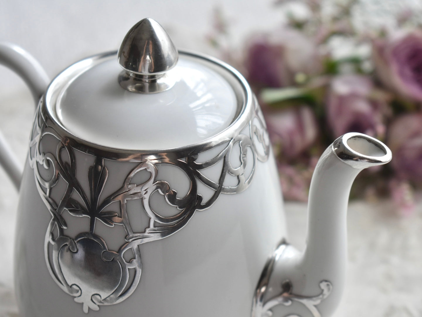 FINE SILVER もっとも純銀に近いシルバーにて施された上質なお品は、1889年に創業したCrown Staffordshireによるポットです。