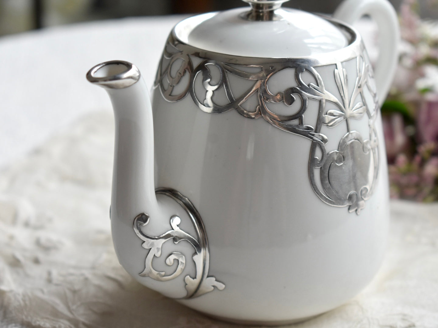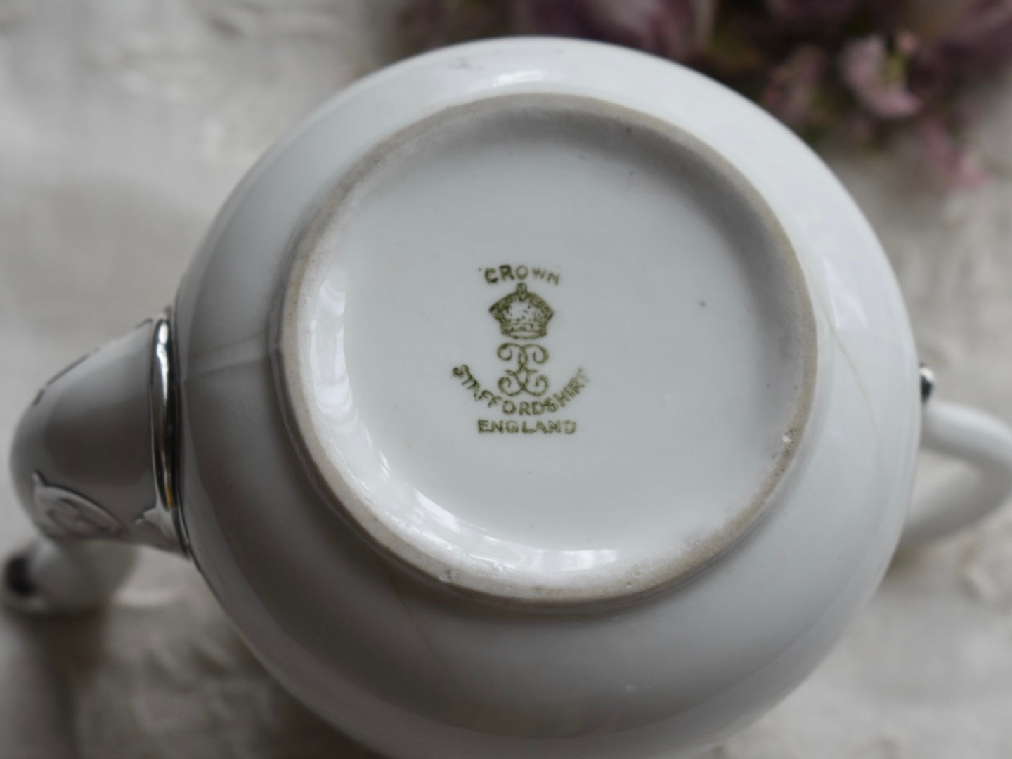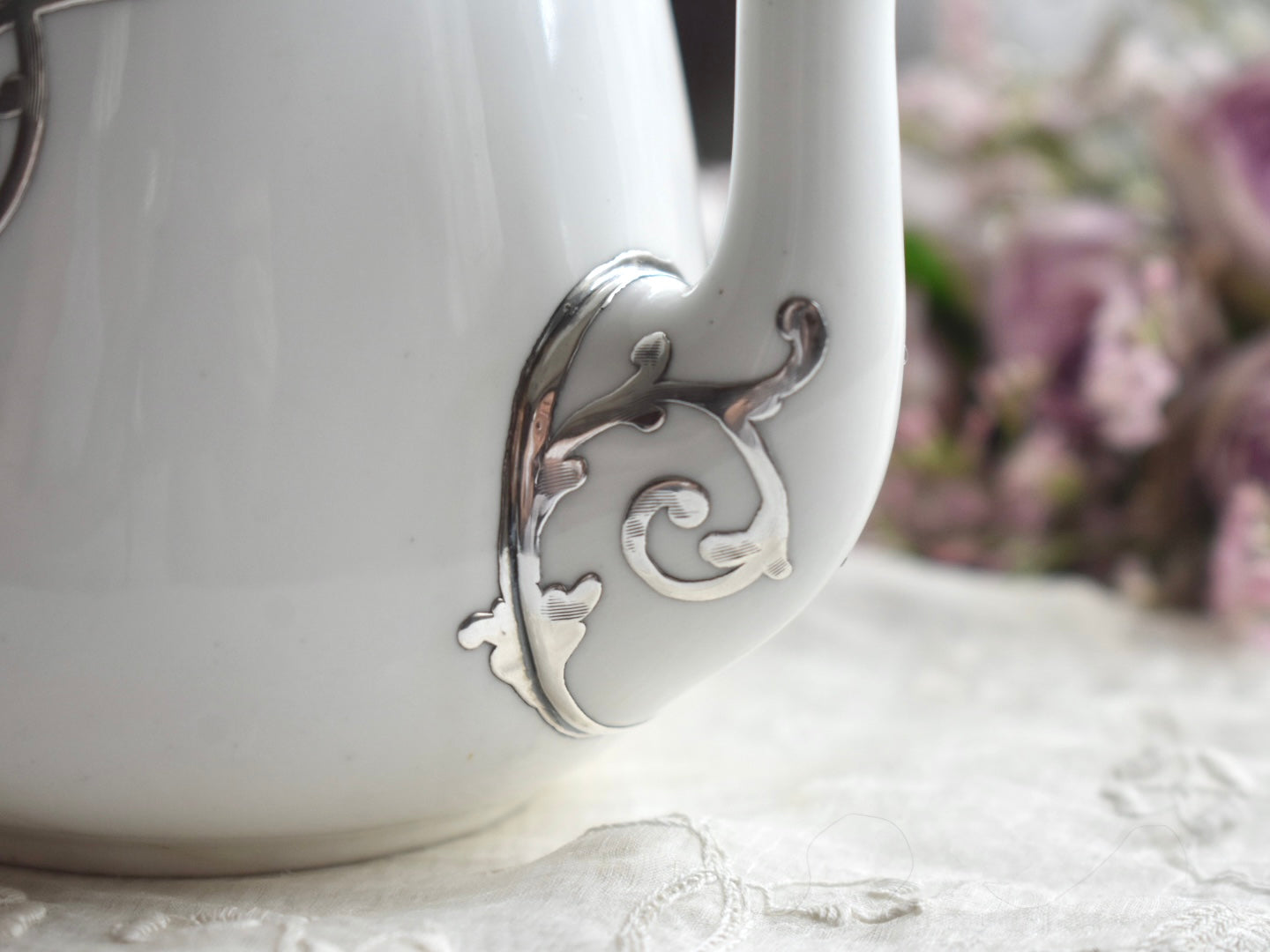 FINE SILVER もっとも純銀に近いシルバーにて施された上質なお品は、1889年に創業したCrown Staffordshireによるポットです。