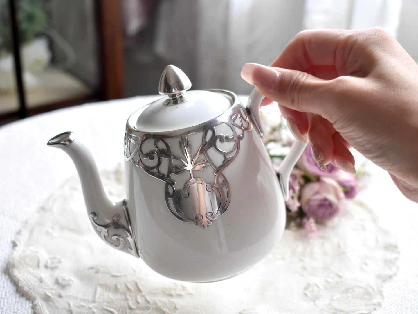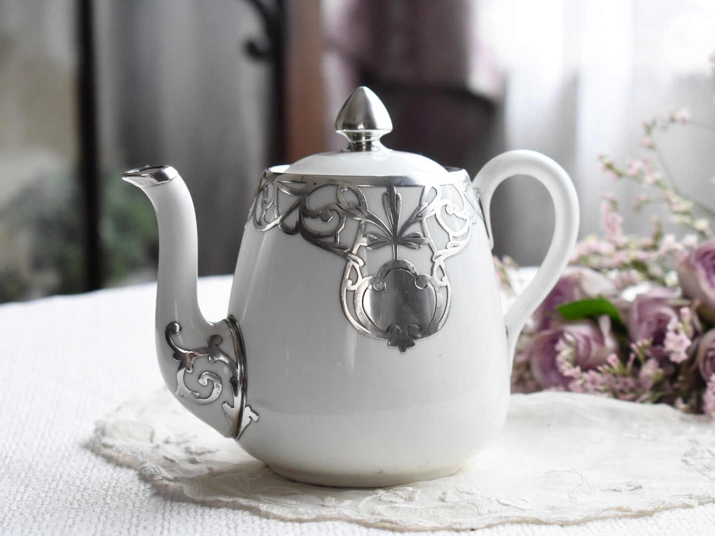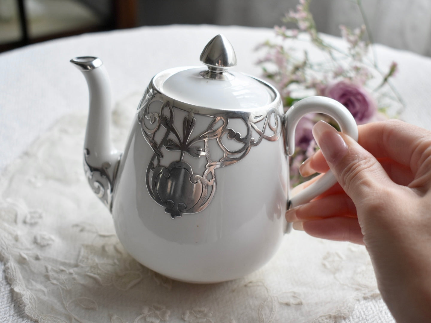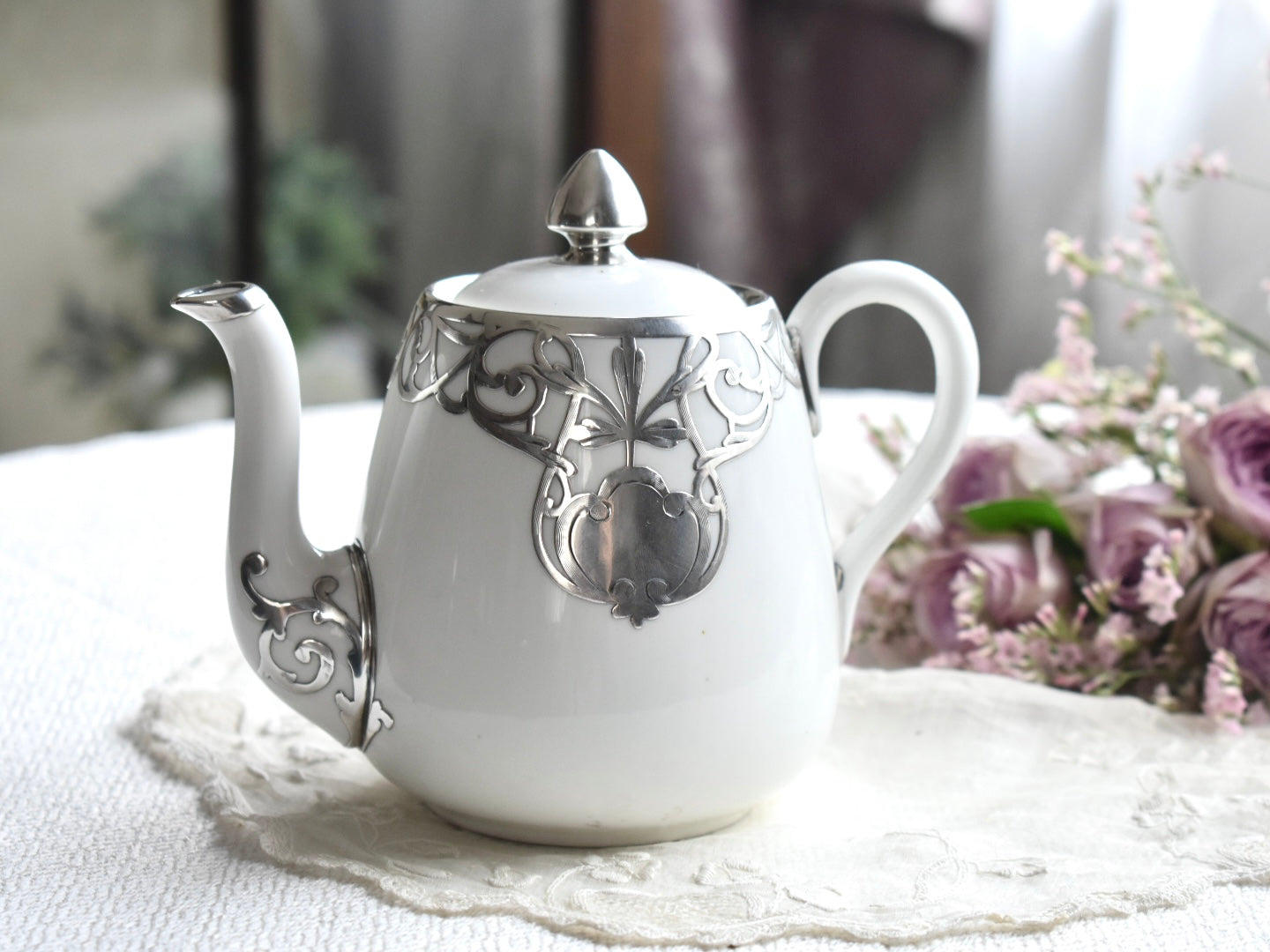 FINE SILVER もっとも純銀に近いシルバーにて施された上質なお品は、1889年に創業したCrown Staffordshireによるポットです。