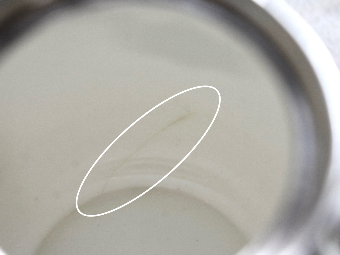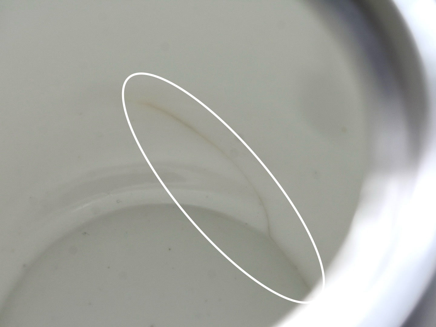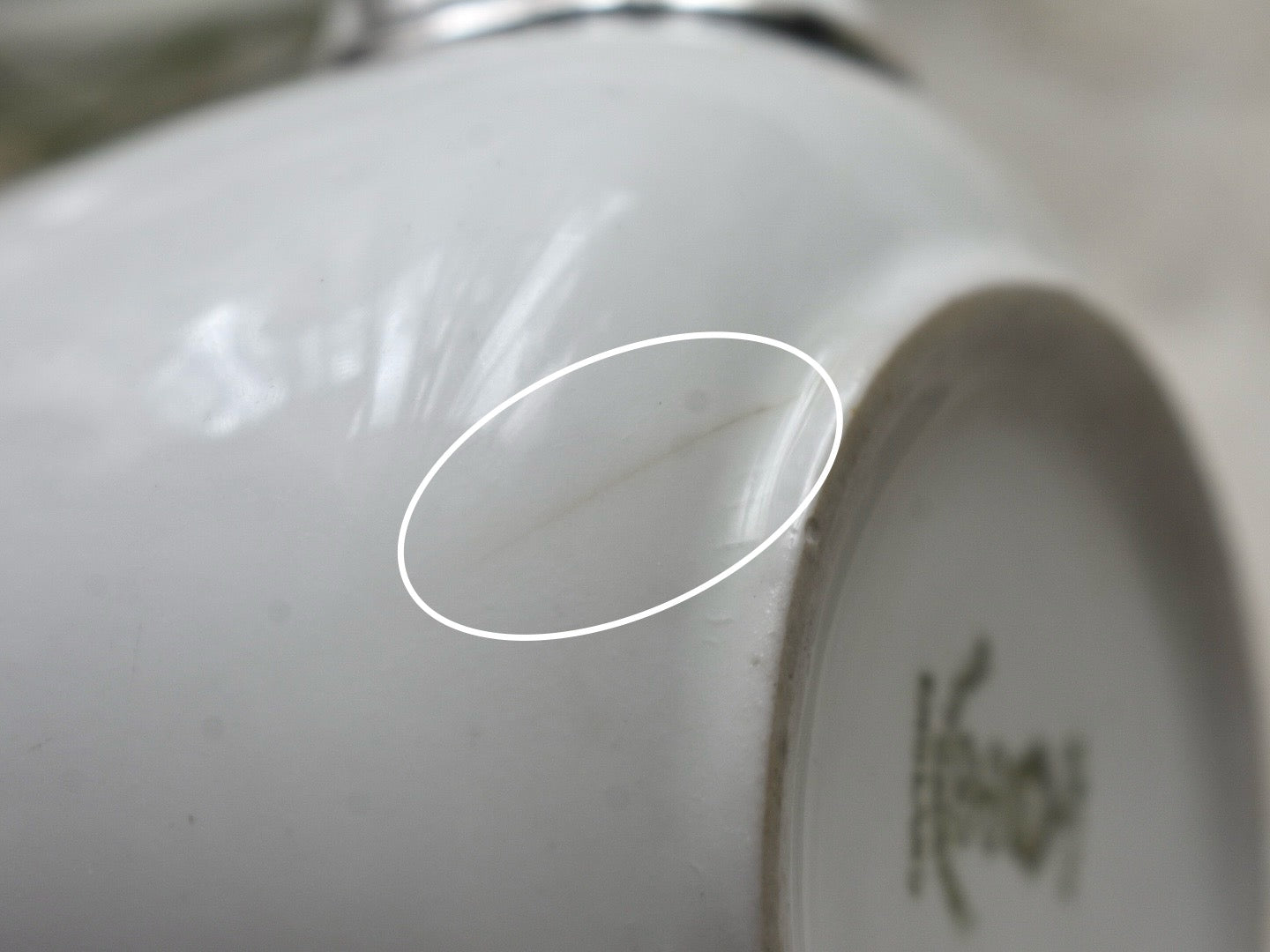 ●ポットの内側にはいくつかのヒビ(ヘアーライン)があり、その何本かは外にまで影響が確認できます。