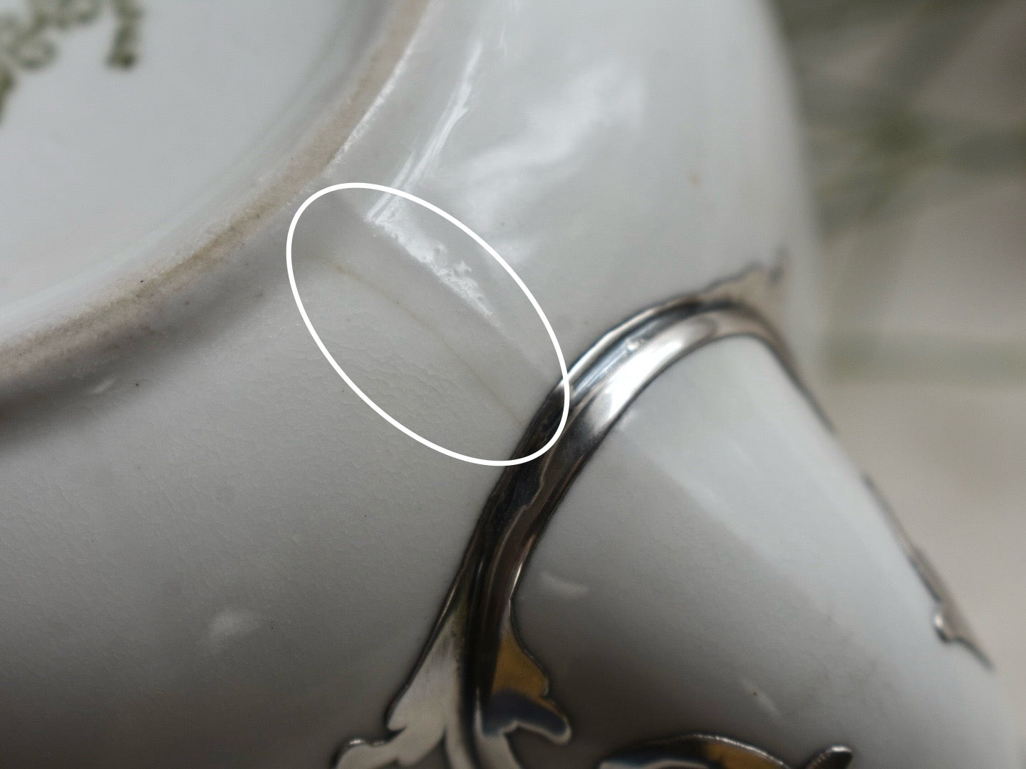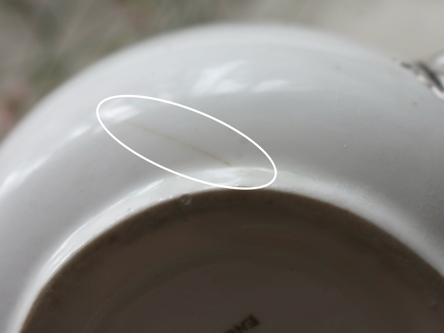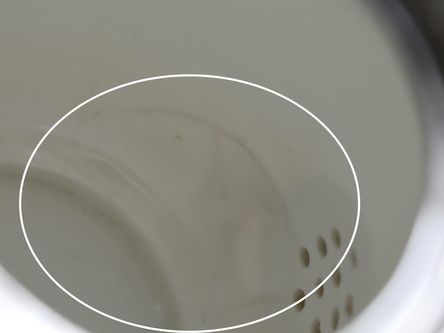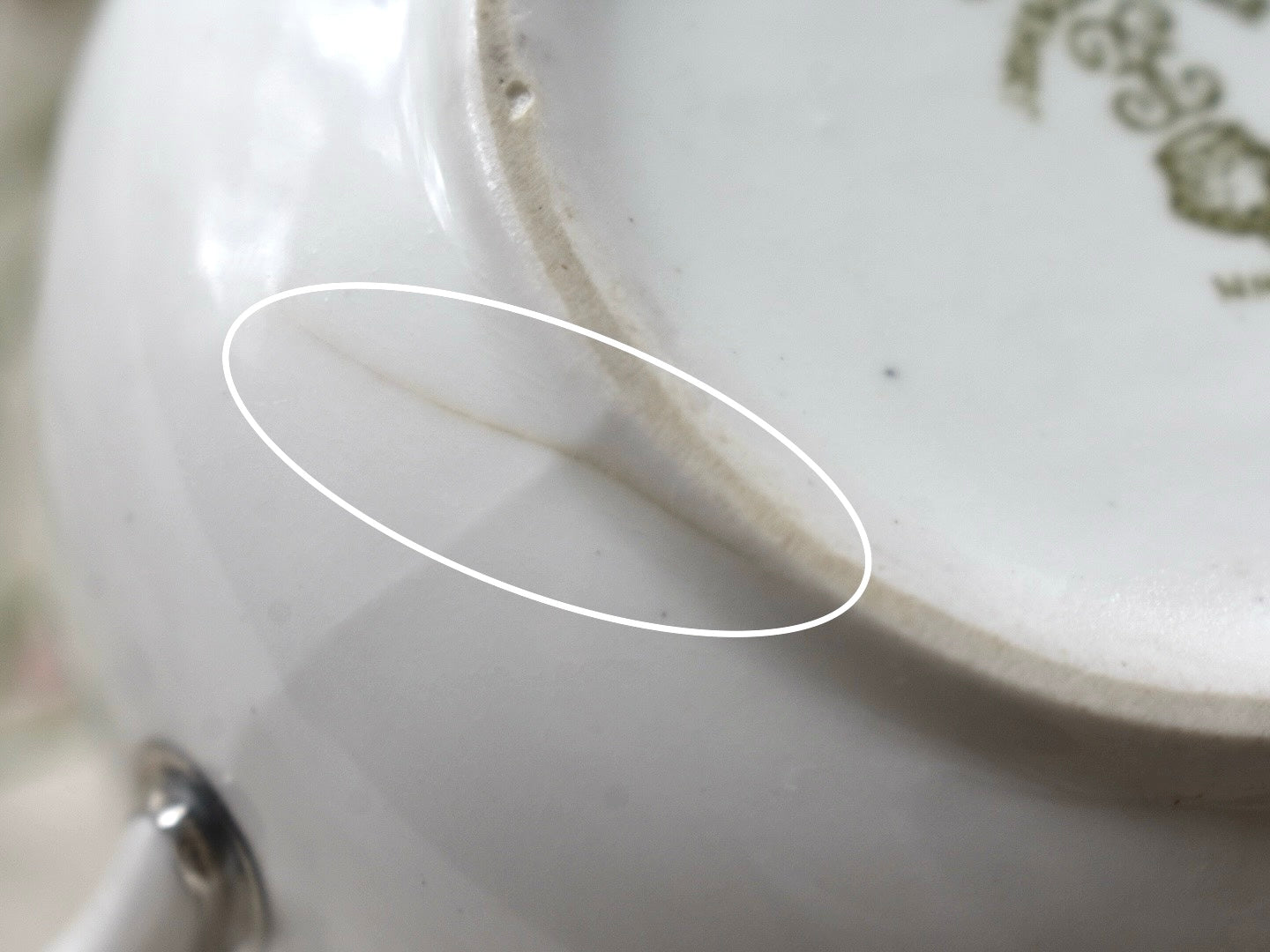 ●ポットの内側にはいくつかのヒビ(ヘアーライン)があり、その何本かは外にまで影響が確認できます。