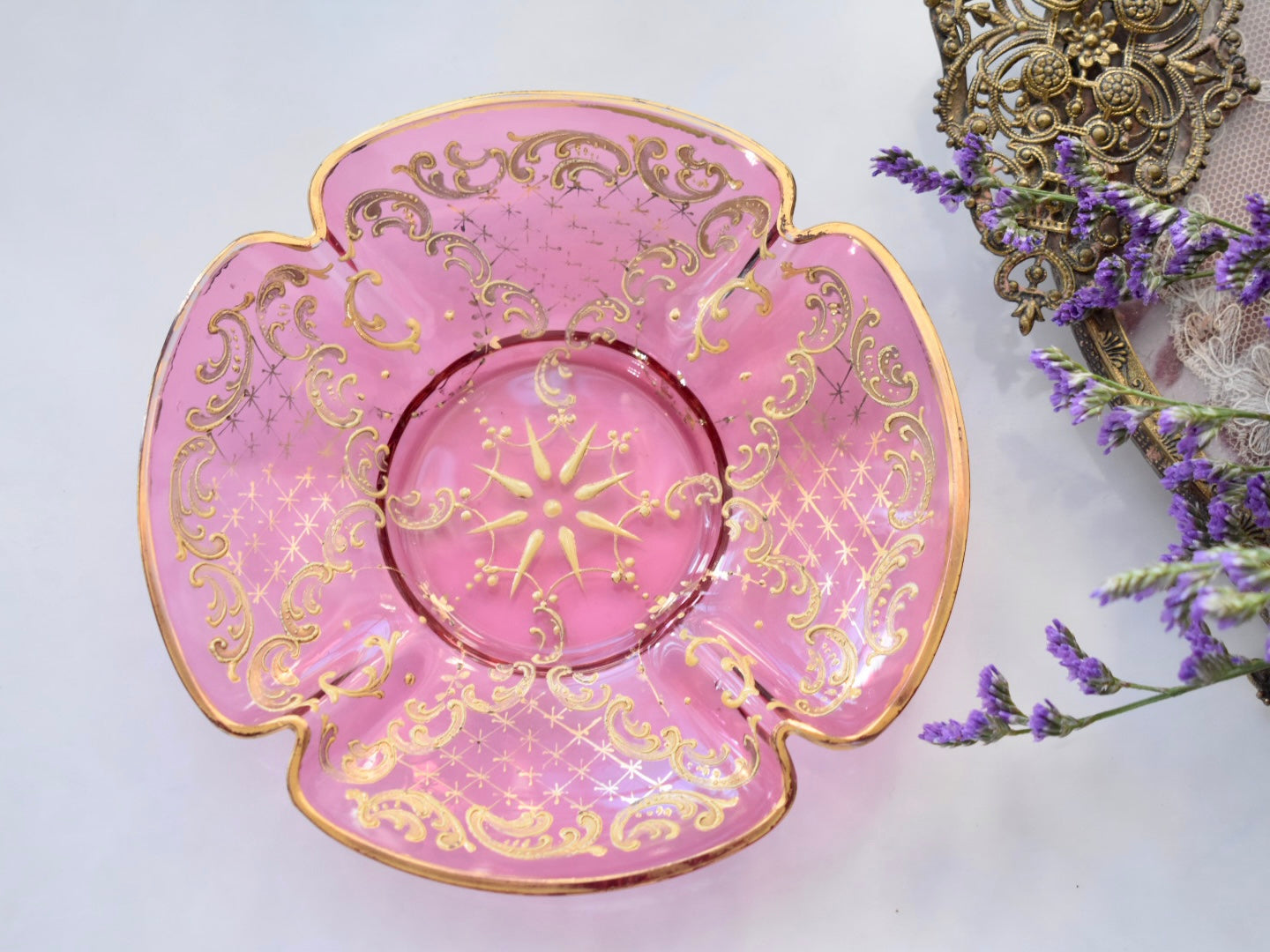 当時、オーストリアの名工ロブマイヤーをはじめ、ボヘミアの工房でこのようなクアトルフォイルの器が作られていました。
