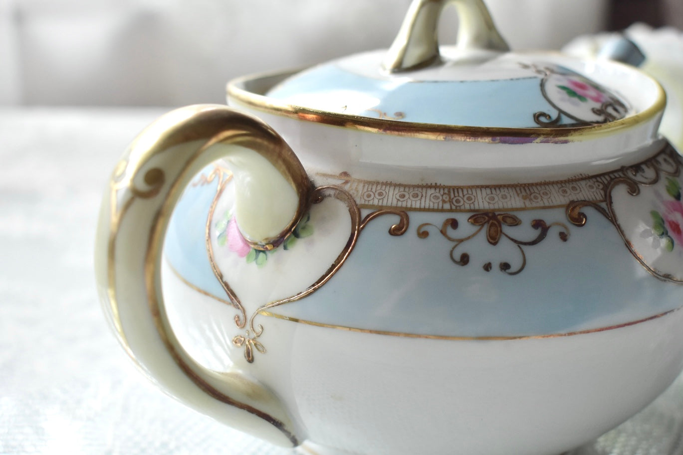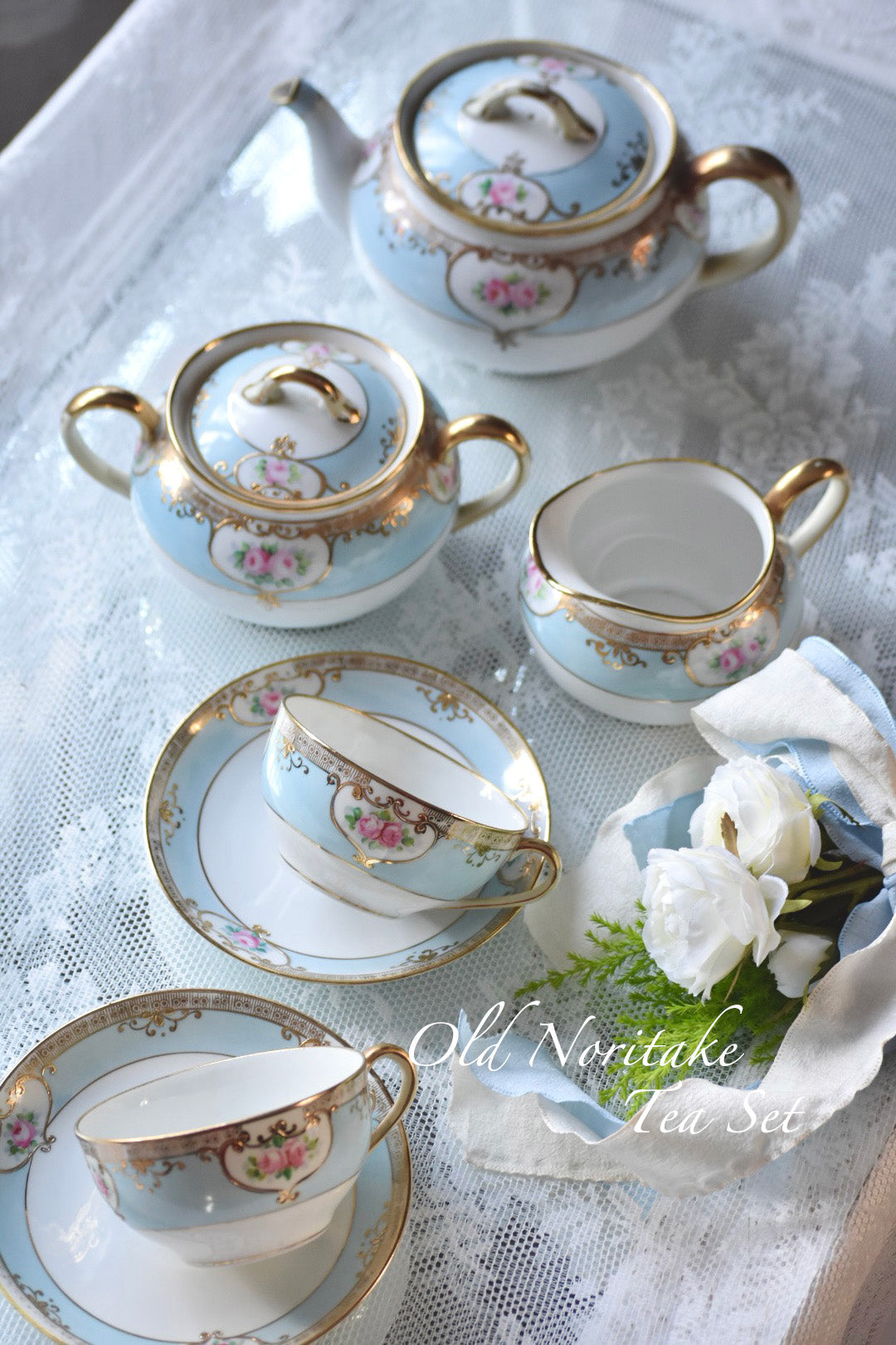 繊細な絵付けと柔らかな色調が織りなす調和が、オールドノリタケならではの魅力を伝えるセットです。
