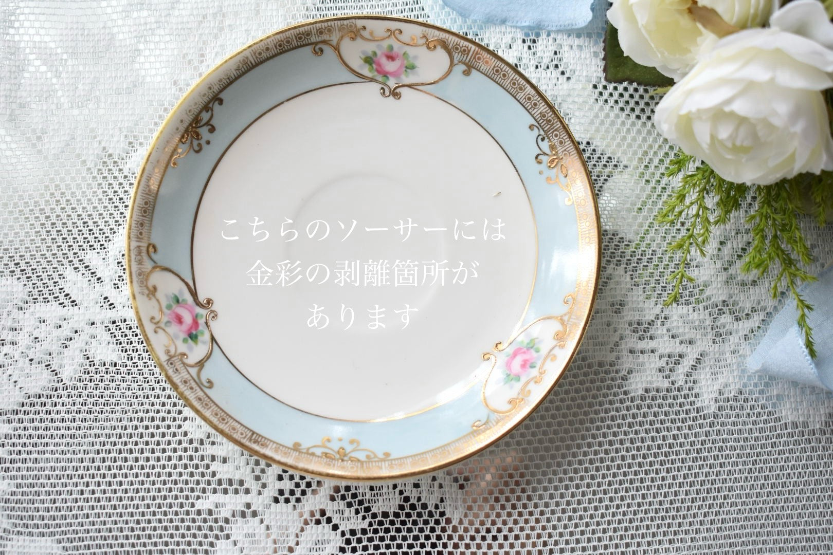 ソーサー:一枚のソーサーの一部に金彩の剥離が見られます。