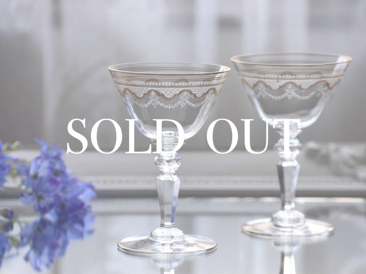 アンティークサンルイの中ではよく見かける人気の高いデザインかもしれませんが、カクテルグラスの形はほとんど見つけることができません。
