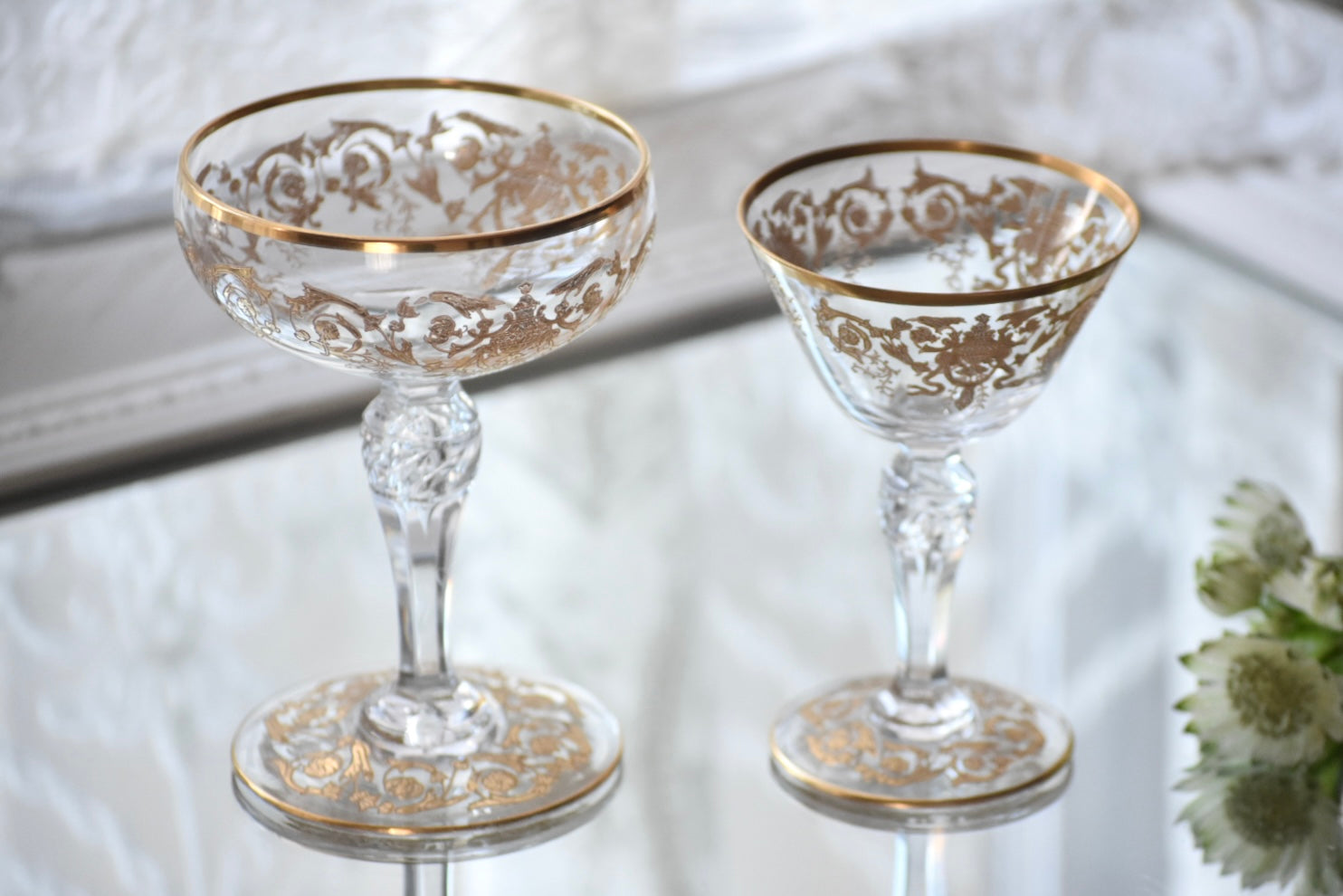 シャンパンクープとカクテルグラス。