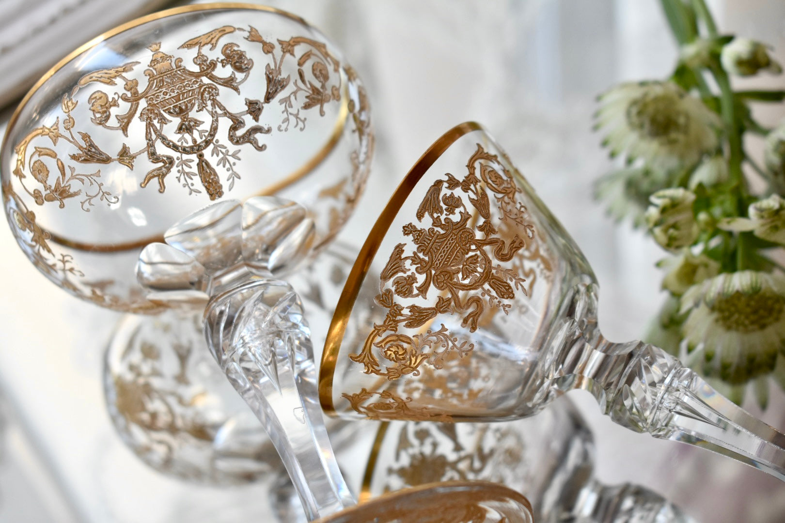 砂糖が貴重とされた時代、フルーツをシャンパンに浸して楽しんだり、所作が美しく見えるグラスは貴婦人にとても愛されました。